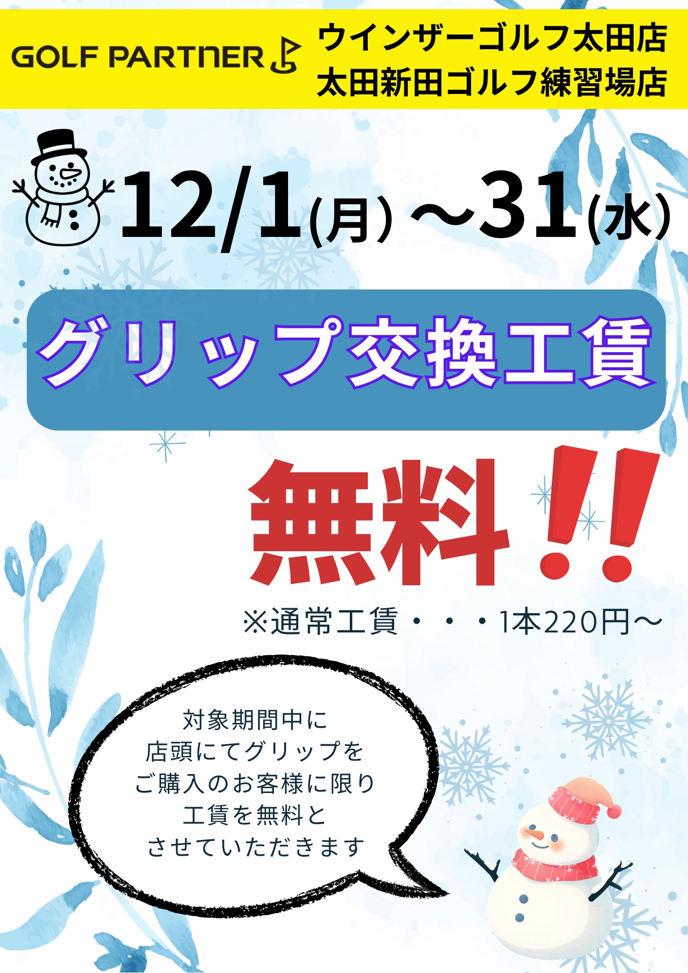 今月はグリップ交換工賃無料キャンペーン中