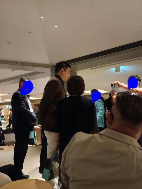 2階のドアが開くのを今か今かと待ちわびるファン達。私は、程良い酔いと、ずっと立ちっ放しであった疲労もALI、空いているソファを見つけ腰を下ろします。すると目の前に「ん?えらくガタイの良い人がいるな?」周りの人達も気付き出しました。次々に一緒に写真を撮ってもらう人達。キャメロンさんではありません。