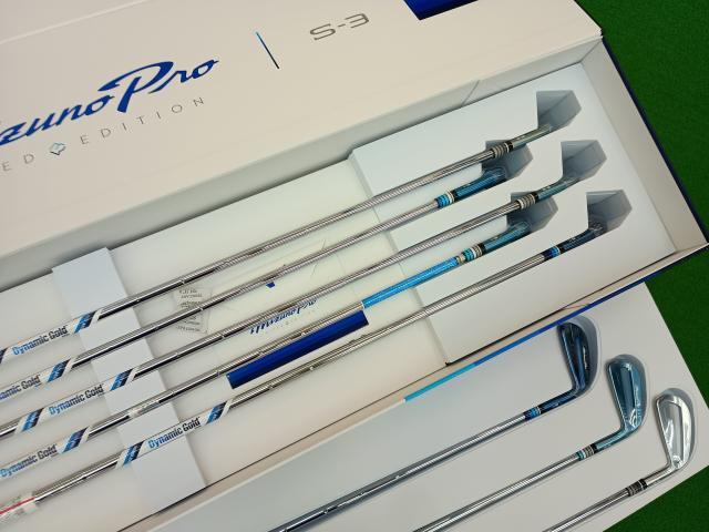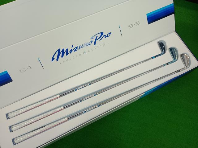さて本日は、以前こちらでご案内していたアイアンが入荷してきましたので、スタッフ皆で眺めていました。正式名称は「Mizuno Pro Ice Blue Limited Edition」として登録されていました。世界400セット限定の商品になります。