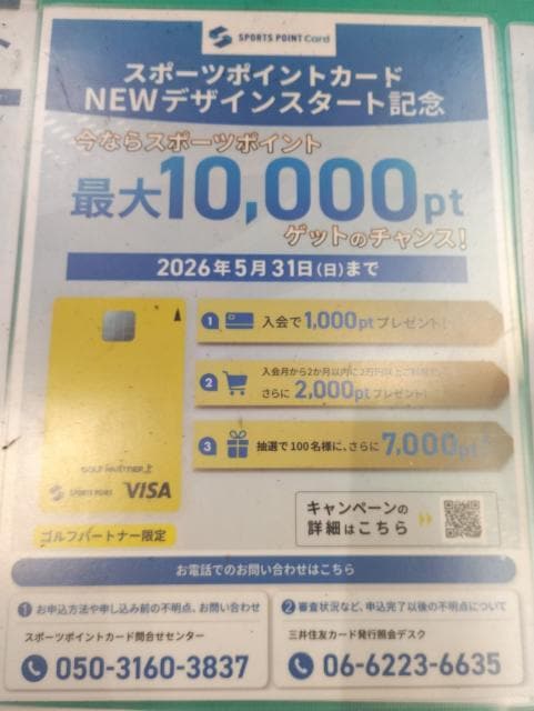 また スポーツポイントクレジット入会で1000P、2万円以上ご購入で2000P、抽選でさらに7000P進呈