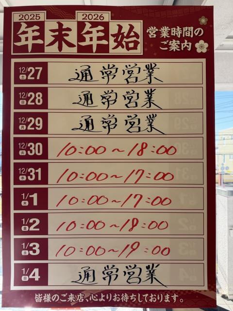 年末年始の営業時間についてお伝え致します。
