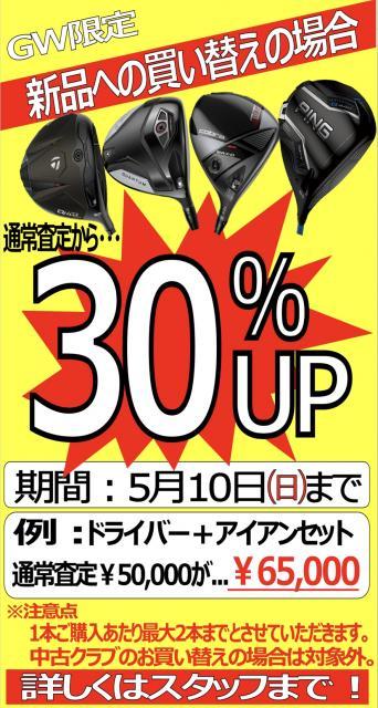 新品クラブ購入時の下取り金額30%アップ中!!!