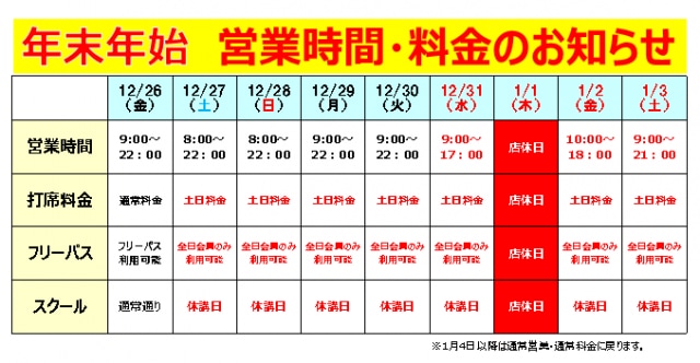 年末年始の営業時間は変則となりますのでご注意ください