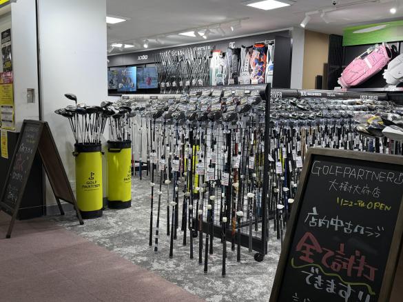 大樹大府店では中古クラブを中心に、最新の新品クラブや小物も充実した品揃えをしています。クラブの買取はもちろん、2,500本を超える在庫を400打席、400ヤードを誇る、全国随一の練習場『ゴルフ倶楽部大樹』にて試打していただくことができます。
