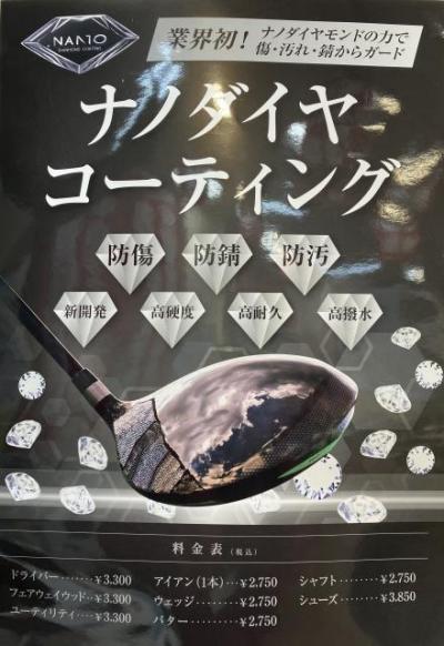 ナノダイヤモンドの力で 大切なクラブをキズ・汚れ・錆から 守ることができます 大事にしているクラブにコーティング してみませんか? 是非、お試しください!!