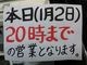 2014/01/02(木)営業時間のお知らせ