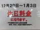2016/12/09(金)年末年始の料金のお知らせ!!